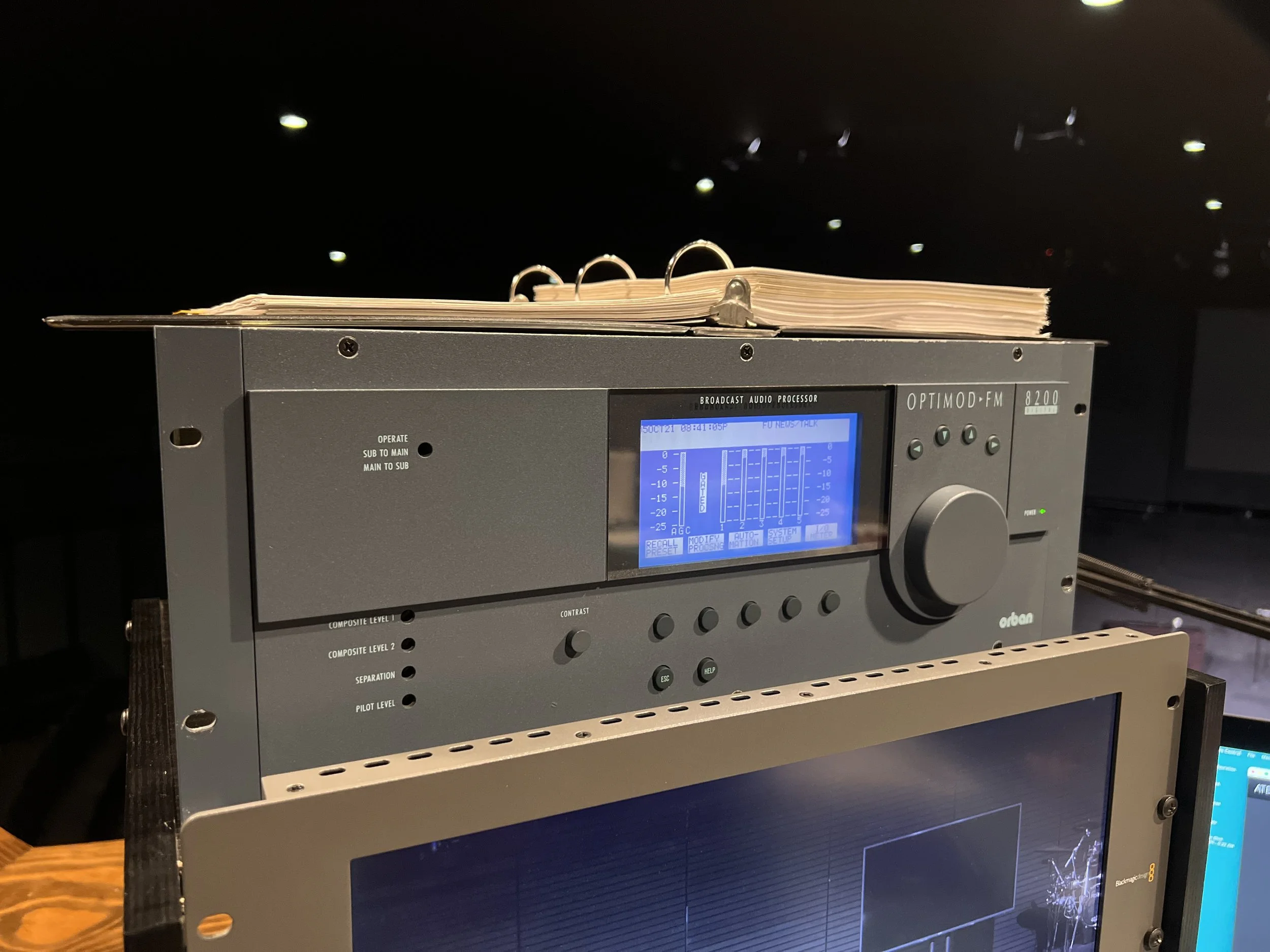 An Orban Optimod FM 8200 was integrated for broadcast audio processing and signal optimization.
